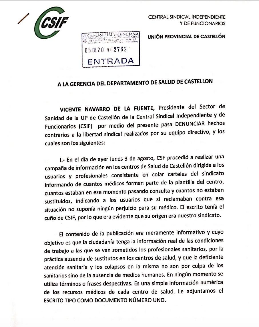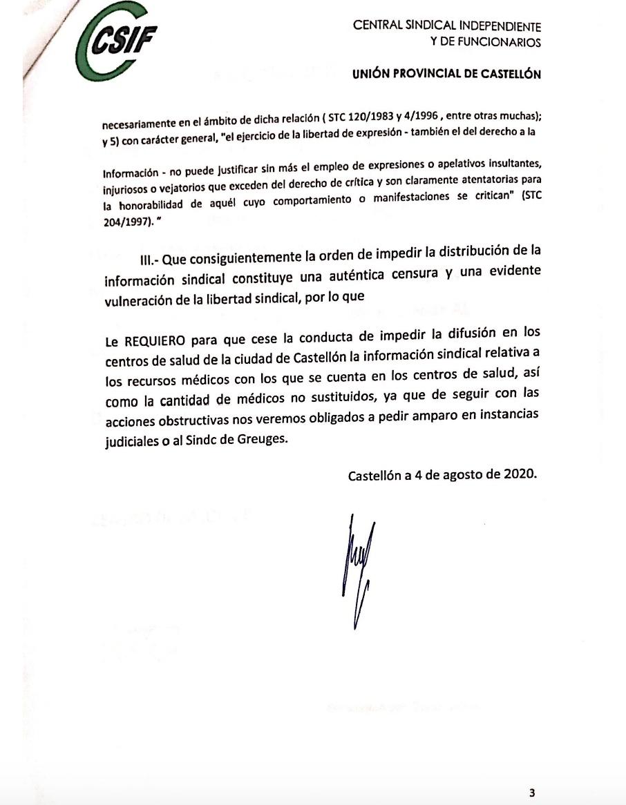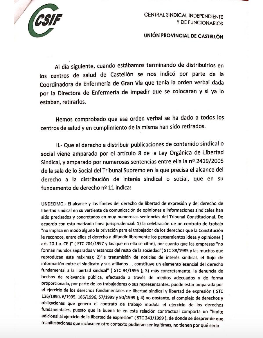 CSif denunció esta censura por parte de la Conselleria, porque atenta con la libertad de información sindical y ha advertido que acudirá al Síndico de Greuges.