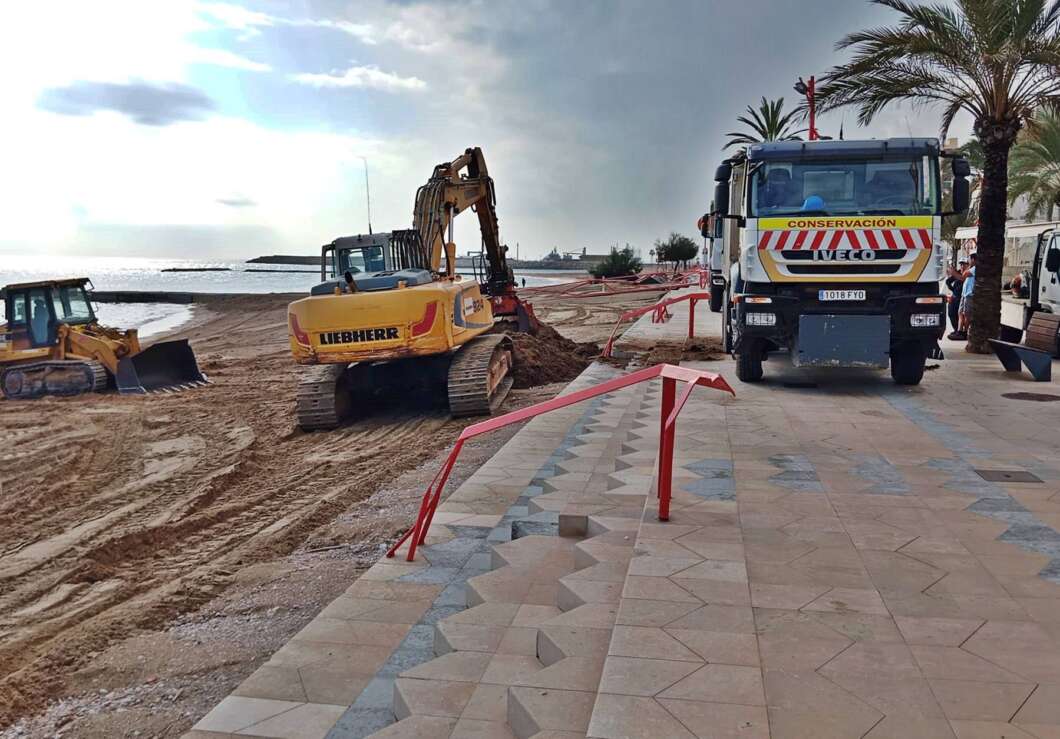 El lunes se iniciaron los trabajos consistentes en la retirada de los restos vegetales de ambas playas, amontonándolos en varios puntos, mientras que durante la jornada de ayer y hoy han sido retirados a la vez que se allanaban las playas.