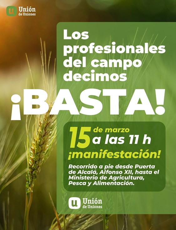 El sector agrario se manifestará en Madrid para defender el mundo rural los días 15 y 20 de marzo. El próximo martes 15 de marzo la Unión de Uniones, donde está integrada 'La Unió de Llauradors i Ramaders', han convocado la manifestación para denunciar los bajos precios en origen, los altos costes de producción, la ineficiencia de la ley de la cadena Alimentaria que sigue siendo deficiente, los daños por sequía y por fauna salvaje y una PAC que perjudica claramente a los profesionales.