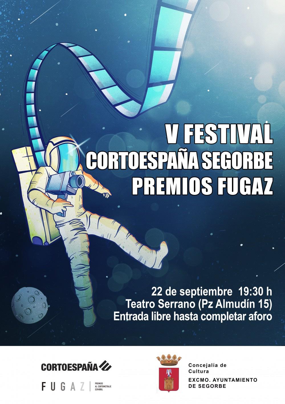Siete de los trabajos más destacados de los Premios Fugaz al Cortometraje Español serán proyectados en el V Festival CortoEspaña Segorbe-Premios Fugaz. Será en el Teatro Serrano, el 22 de septiembre a las 19:30 y la entrada será libre hasta completar aforo. La exhibición forma parte del Festival Itinerante CortoEspaña, iniciativa que promociona el cortometraje por todo el país.