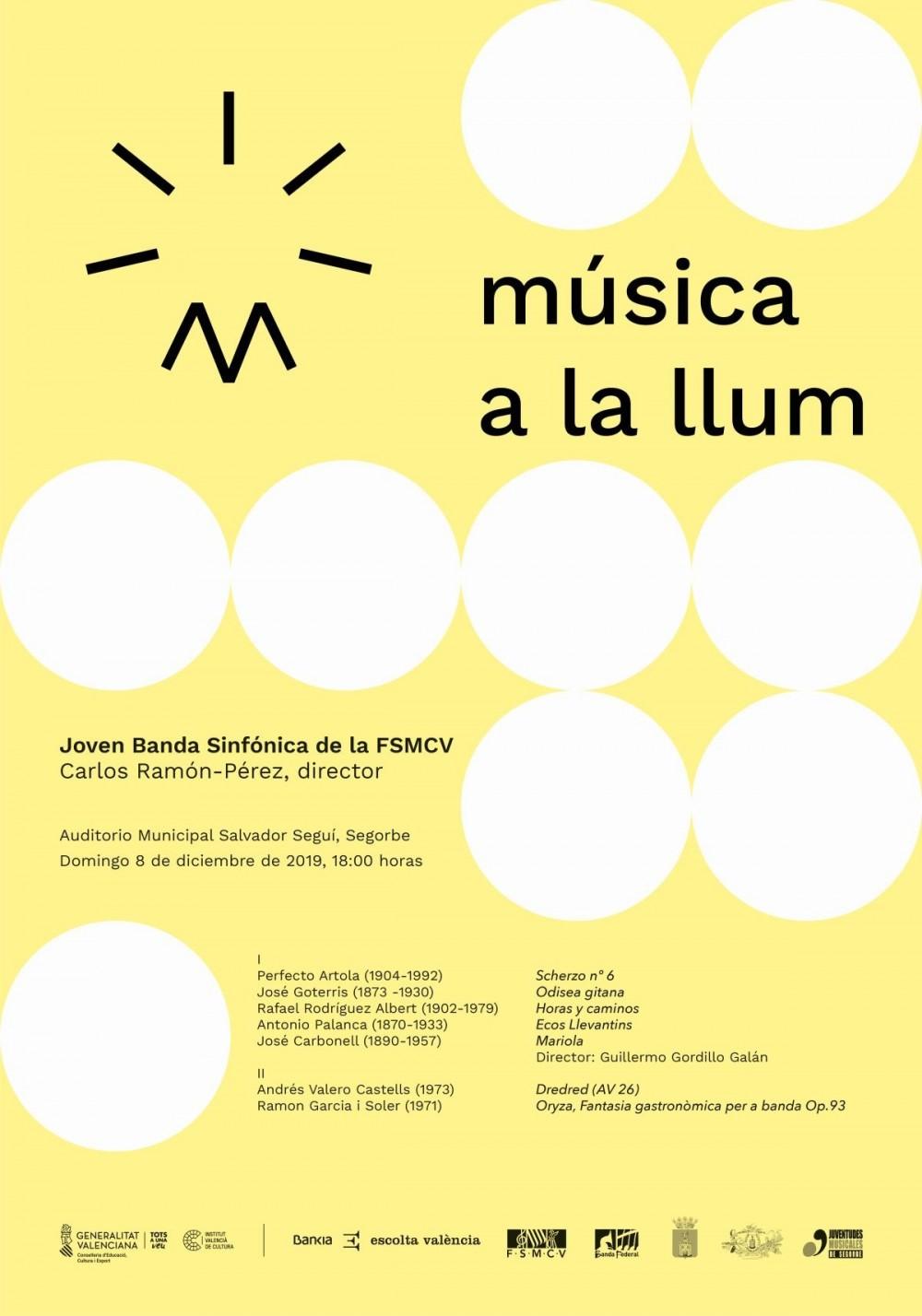 La Jove Banda Simfònica de la Federació de Societats Musicals de la Comunitat Valenciana (FSMCV) ofereix aquest diumenge una nova edició del concert 'Música a la llum', projecte de recuperació del patrimoni musical impulsat per Bankia, l'Institut Valencià de Cultura (IVC) i l'FSMCV.