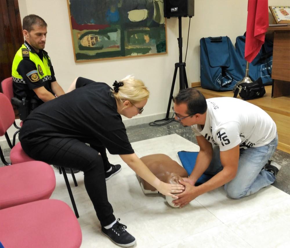 Lecciones prácticas durante el curso de manejo de desfibriladores en SegorbeFormadores expertos en el uso de los desfibriladores se han desplazado hasta Segorbe para realizar estos cursos formativos presenciales, que consisten en lecciones prácticas del correcto uso de estos equipos y que tienen una duración total de 2 horas cada sesión. Previamente, los potenciales usuarios de los dispositivos DESA han podido acceder a un espacio formativo online para empezar a familiarizarse con su uso.