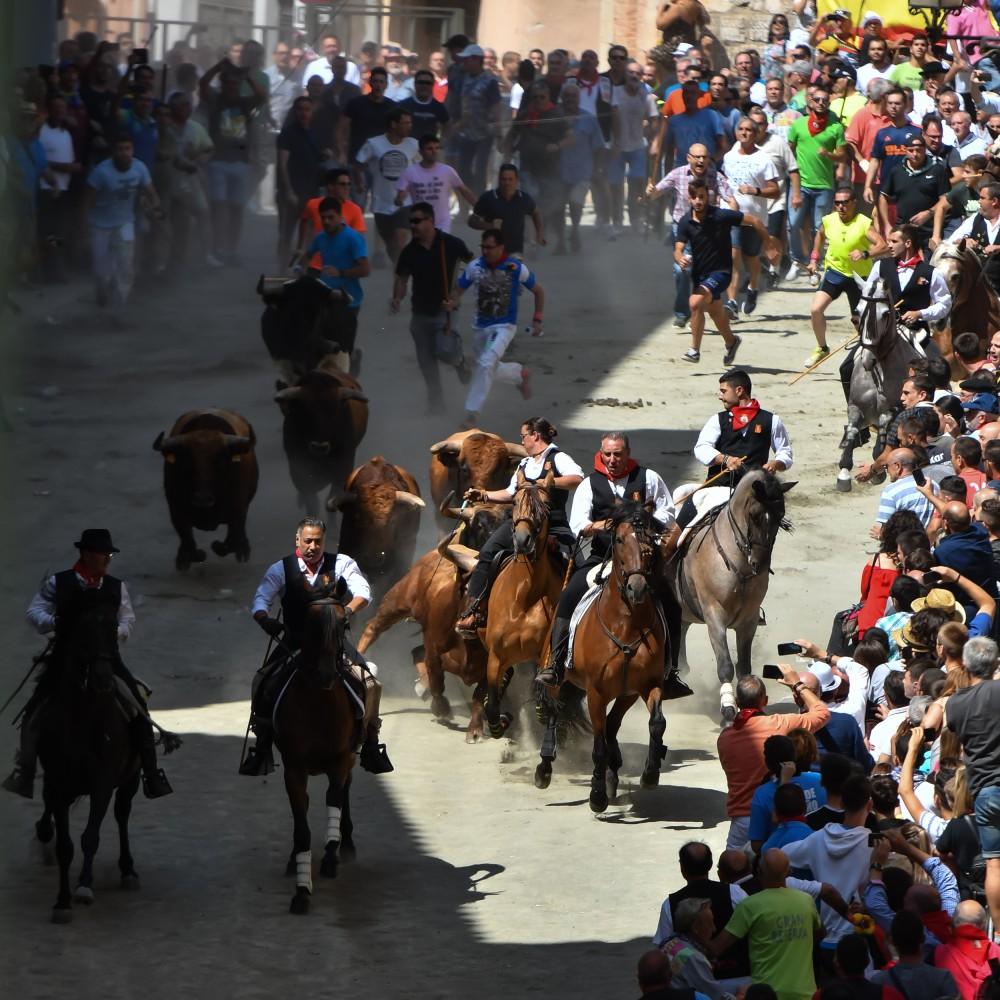 La segunda Entrada de Toros y Caballos ha transcurrido con total normalidad. Con una duración de un minuto y ocho segundos, catorce caballistas han acompañado a los seis toros y el manso en su recorrido por la calle Colón, de Segorbe.