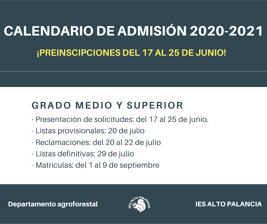 Además se puede realizar la inscripción telemática y revisar los plazos de los diferentes ciclos aquí: http://mestreacasa.gva.es/web/iesaltopalancia/listadosfp?fbclid=IwAR37XGtLI1oZJ8MHDJ-fvcHdA2EfRZiziJrfOPMT7bWLVI_KUG-D6cxDHyQ
