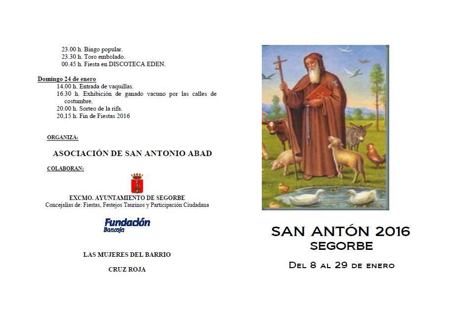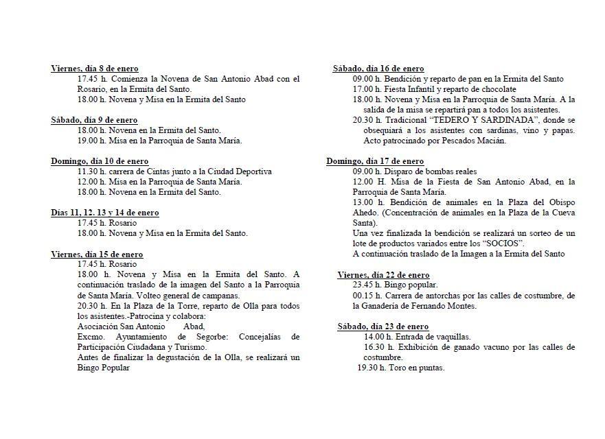 Por otro lado y entre las novedades que se van a realizar en esta festividad, destaca el reparto y degustación de Olla Segorbina que tendrá lugar el viernes día 15 de enero en la plaza de la Torre.