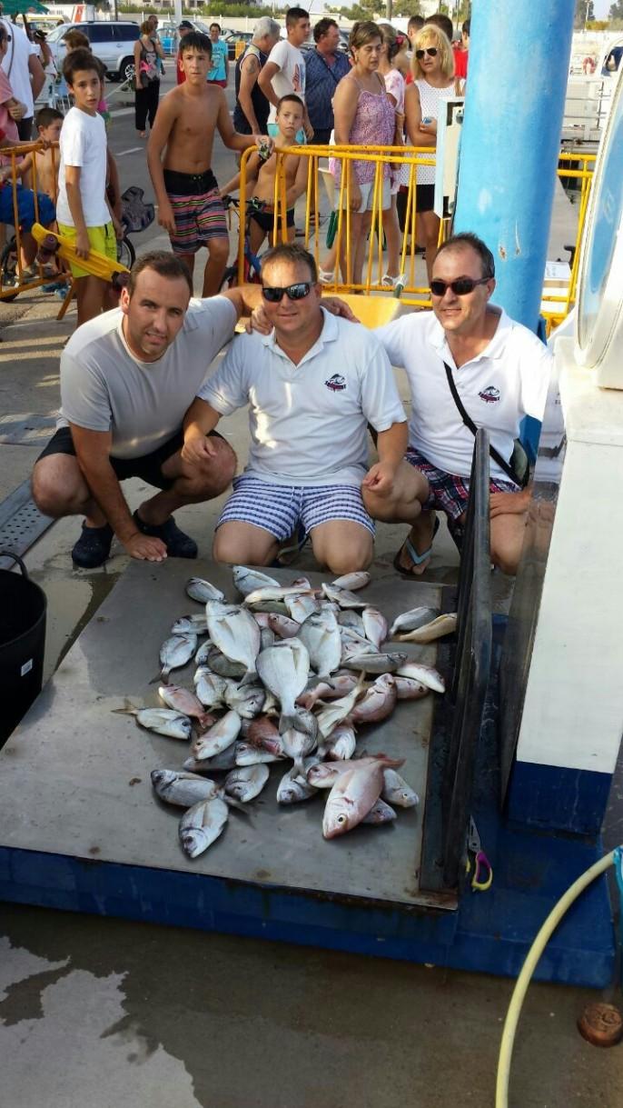 Las piezas más grandes del día fueron: Un denton, de 2.315 Kg de la embarcación Alimara, capitaneada por Alejandro Marqués y Alfredo. Esta embarcación llegó a presentar también un gallo San Pedro de 1,200 KG; una dorada, de 1,200 KG, de la embarcación ‘Neus’, de Santiago Dembrilio y Carlos Robles, que también presento una magra de 400 G; y un Sargo de 528 G de la embarcación Rape, de Vicente Planelles y Vicente Portell.