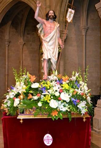 Imagen del Cristo Resucitado que va sobre un anda, obra de los escultores Artemartínez de la localidad de Horche (Guadalajara). Desfila a hombros de 4 portadores el Domingo de Resurrección.