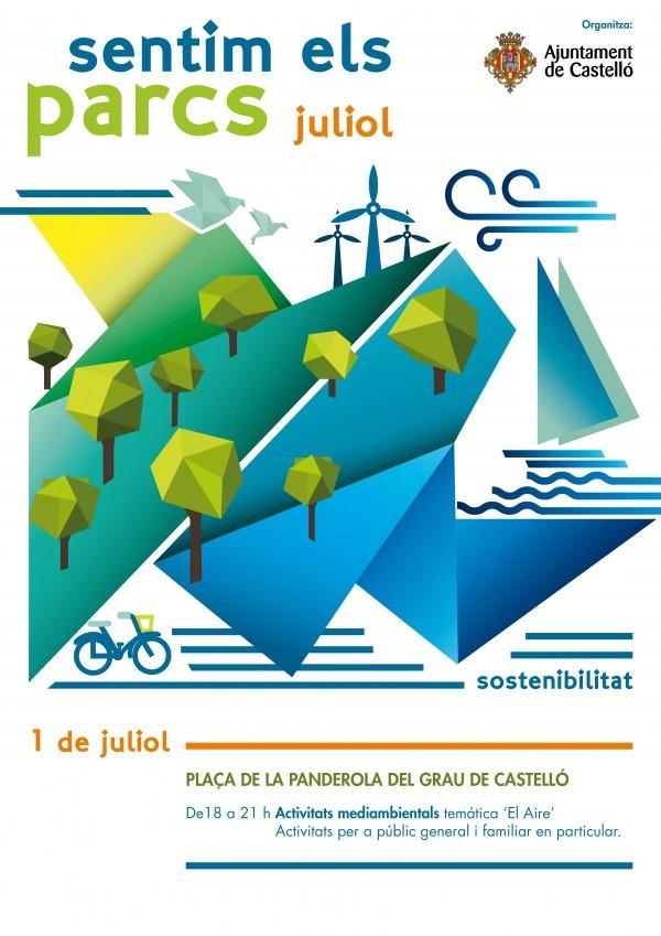 cartell_sentimelsparcs_juliolLa campaña Sentim els parcs organiza mañana una jornada especial dentro de las fiestas de San Pedro, en el Grao, para cerrar la temporada. El parque de la Panderola acogerá mañana de 18:00 a 21:00 cinco actividades dirigidas a todos los públicos con el objetivo de concienciar sobre aspectos como la contaminación del aire, la importancia del viento y su potencial para generar energía, entre otras.