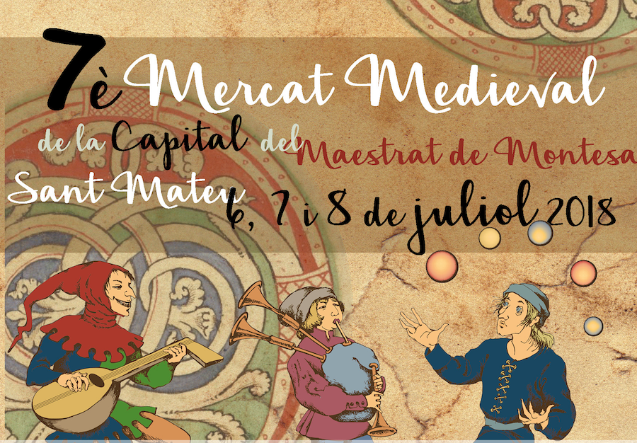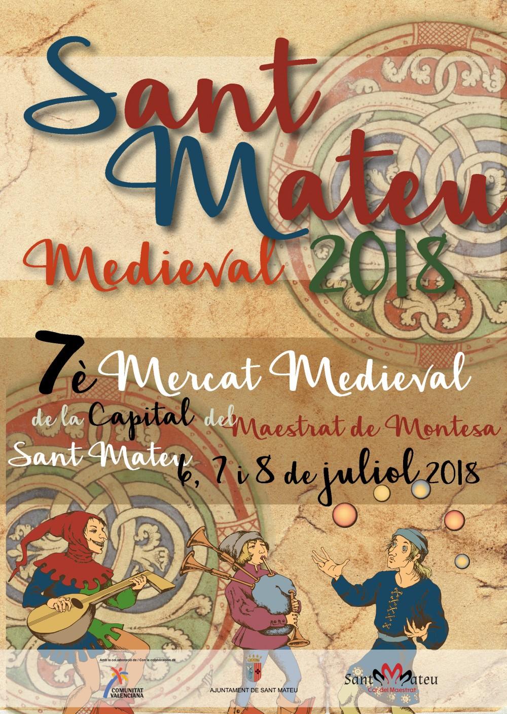 Organizado por el Patronato Municipal de Turismo de Sant Mateu y el Ayuntamiento de Sant Mateu, con la colaboración de la Generalitat Valenciana, los próximos días 6 por la tarde, 7 y 8 de julio de 2018 se va celebrar Sant Mateu Medieval 2018, séptimo Mercado Medieval de la capital del Maestrat de Montesa en el entorno de la Plaza Mayor y calles adyacentes del casco antiguo.