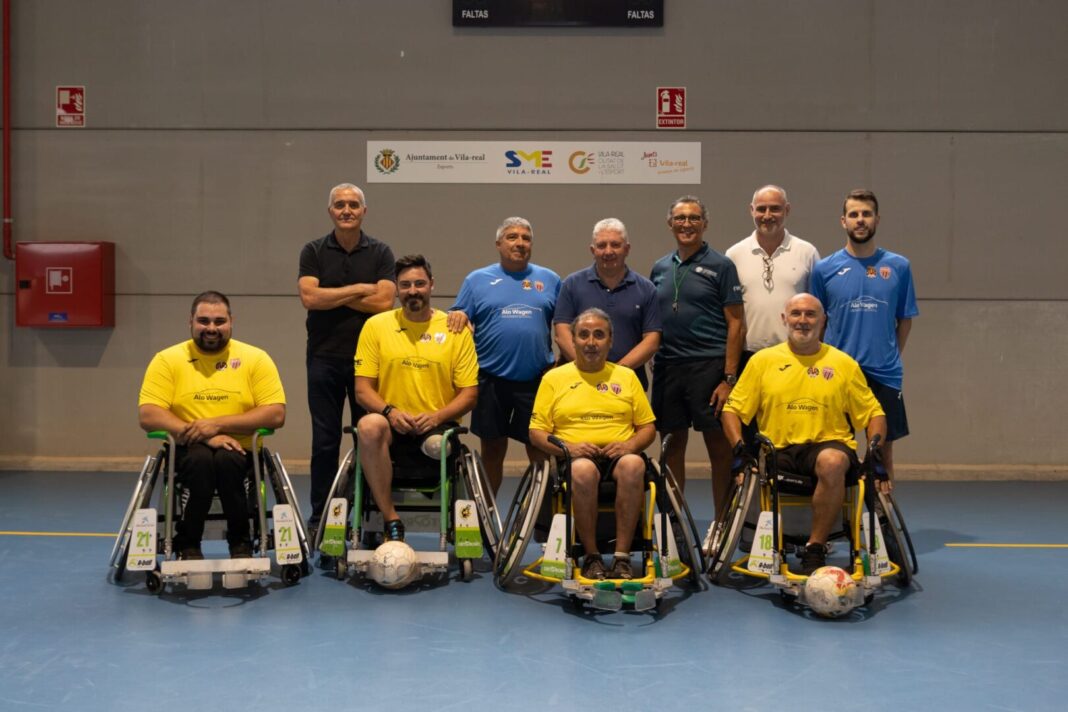 El regidor d'Esports i Salut de l'Ajuntament de Vila-real, Javier Serralvo, ha assistit a l'entrenament de l'equip d'A-Ball, acompanyat per José Ramón Cantavella, cap del Servei Municipal d'Esport, i dels representants d'AFAE (Associació per al Foment de l'A-Ball (futbol en cadira) a Espanya, Enrique García i César Iribarren. Serralvo s'ha interessat per la dinàmica de l'esport i ha tancat acords per a la futura presentació en societat de l'equip d'A-Ball de Vila-real integrat en  el club  Vila-Esport Futbol Sala. Els pròximos dimarts 21, 28 de juny i 5 de juliol es realitzaran entrenaments oebrts al fet que puguen unir-se més jugadors que vulguen integrar-se en l'equip d'A-Ball. Es tracta d'un nou esport adaptat que naix amb la idea de l'ex-futbolista  Fernando Giner i que, amb l'ajuda de l'empresa Ortoprono, han ideat unes cadires adaptades per a jugar a futbol sala.