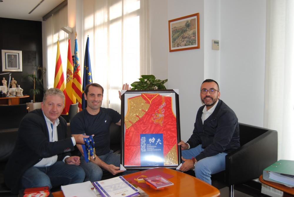 L'alcalde de Vila-real, José Benlloch, ha rebut al campió d'Europa de Wushu Kung-Fu vila-realenc, Rubén Solera, i l’ha felicitat per les tres medalles aconseguides en l'últim Campionat Europeu d'aquesta disciplina d'arts marcials. Benlloch, acompanyat també del regidor d'Esports i Salut, Javier Serralvo, li ha fet lliurament d'un diploma de reconeixement de la ciutat pels seus triomfs esportius i per la seua contribució a la consolidació de la marca Vila-real, Ciutat de la Salut i de l'Esport. Solera, per part seua, ha donat a la ciutat d'un vestit xinés en record de la seua participació en la competició, celebrada a Moscou.