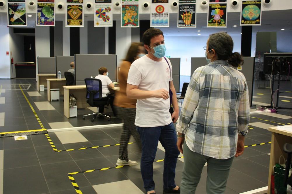 El protocol del Palau de la Festa implica que les vies d'accés i d'eixida són diferents. Mentre que l'entrada es fa per la porta principal, els usuaris i usuàries han d'abandonar l'edifici pels passadissos laterals. Allà, personal de consergeria facilita gels hidroalcohòlics per a la higienització de les mans.