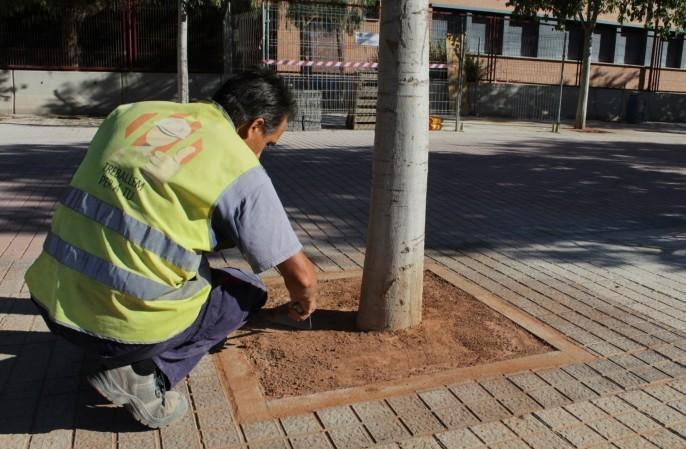 Los trabajos consisten en la reducción de la superficie del alcorque y la sustitución del recubrimiento de grava y resinas por el estado natural de tierra batida, “permitiendo una adecuada oxigenación e irrigación del arbolado para su normal desarrollo”, explica el concejal de área, Francisco Valverde. “Se trata de una solución mucho más estética que la anterior y con prácticamente ausencia de mantenimiento”, añade el edil, quien recuerda que el departamento de Servicios Públicos ha decidido actuar en los alcorques en respuesta a “las muchas quejas recibidas y el grave problema de mantenimiento provocado por la solución de grava adoptada por el anterior gobierno municipal del PP en gran parte de las calles y avenidas de la ciudad”. Muchas de las quejas recibidas a este respecto procedían de padres de escolares del CEIP Botànic Calduch, debido sobre todo a la suciedad provocada por la grava al desprenderse así como al riesgo de caídas de los niños. Por este motivo, Servicios Públicos ha decidido renovar inicialmente todos los alcorques del paseo ubicado frente al colegio, con una inversión aproximada de 11.000 euros.
