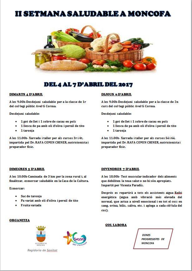 L’Ajuntament de Moncofa, des de la Regidoria de Sanitat, amb la col·laboració d’Activamutua, organitza la II Setmana Saludable del 4 al 7 d’abril.