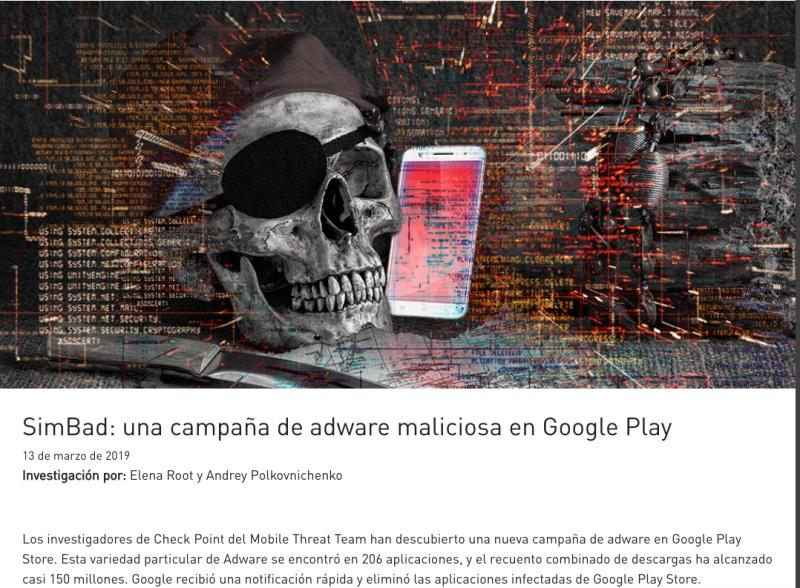 La Oficina de Seguridad del Internauta (OSI), del Instituto Nacional de Ciberseguridad (Incibe), ha alertado sobre la propagación masiva de un 'malware' denominado 'Simbad', que ha infestado más de 200 aplicaciones y que ha podido alcanzar a 150 millones de ususarios, que estuvieron disponibles en la tienda oficial Google Play. La funcionalidad principal del malware es mostrar publicidad y aunque las aplicaciones ya han sido eliminadas de Google Play, los usuarios que instalaron alguna de ellas, deberán eliminarlas manualmente.