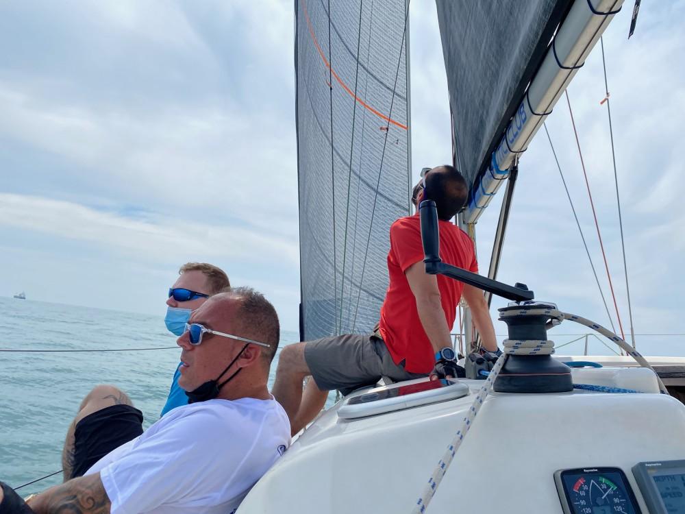 El sábado amaneció lluvioso y plomizo. El Comité optó por el campo sur, frente a la costa de Almassora. Unas veces llovía, otras, apuntaba maneras… pero el viento era inestable. El Comité esperó todo lo que pudo, cuando subió el viento hasta superar los 6 nudos de intensidad de componente noreste, se preparó el campo de regatas y se dio la salida a los ORC. Eran la clase más competitiva que se jugaba la puntuación en el campeonato de España.