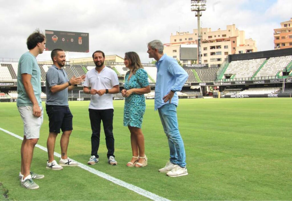 El césped del Skyfi Castalia ya luce su mejor apariencia a dos días del encuentro entre el CD Castellón y el Real Oviedo de este domingo, a las 21.30 horas. El primer teniente de alcalde, Sergio Toledo, ha estado presente en el acto de recepción de la obra, acompañado por la concejala de Deportes, Maica Hurtado, así como por técnicos municipales y responsables de la empresa adjudicataria, Royalverd, y del CD Castellón.