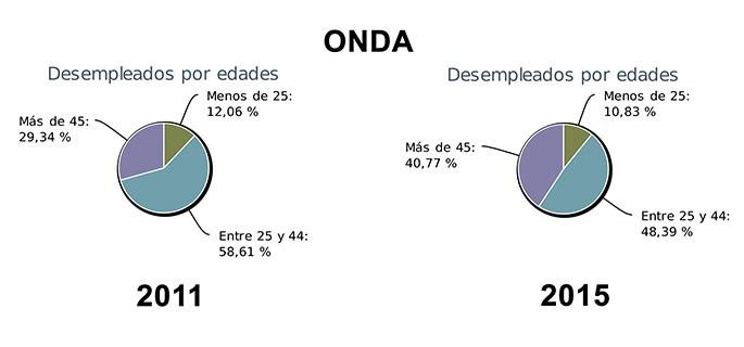 Concretamente, la socialistas ha comparado los datos del SERVEF para demostrar que, desde que Salvador Aguilella es alcalde, en Onda ha aumentado el número de personas de 45 años desempleadas. Mientras que en mayo de 2011 figuraban inscritas 932 ondenses mayores de esa edad, representando casi el 30% de parados, en diciembre de 2014 estaban apuntadas en las listas del SERVEF 1129, suponiendo más del 40% de desempleados de un total de 2769 parados. En esta línea, la concejala socialista ha señalado que estos datos “son aún más graves si recordamos que la población ondense ha disminuido en 910 personas”.