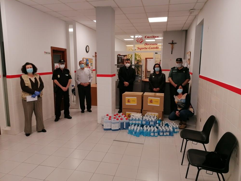 La Subdelegada del Gobierno en Castellón, Soledad Ten, junto con el Coronel Jefe de la Guardia Civil de Castelló, Miguel Fresneda y el Comisario Jefe provincial de la Policía Nacional de Castelló, Emilio Romero han donado mascarillas al Banco de Alimentos de Castellón y a Cáritas Diocesana de la provincia de Castelló.