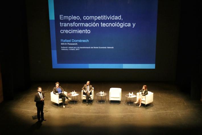 La primera conferencia que marca el inicio de este ciclo ha corrido a cargo de Rafael Doménech, responsable de Análisis Económico del BBVA Research y profesor de Economía de la Universitat de València, cuya ponencia llevaba el título de "Empleo, competitividad, internacionalización y crecimiento empresarial".