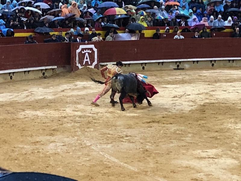 Seguía lloviendo, el chaparrón cada vez caía más fuerte, Castella estaba nervioso. Hebijano miraba la capa pero también al torero. Se giraba con rapidez, levantaba la cabeza y amenazaba. Y el diestro se rindió.