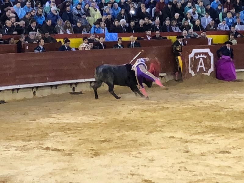 El diestro intentó lucirse con el capote y el recibimiento. Pero el toro clavó la pata en el terreno irregular y se cayó. Una vara.