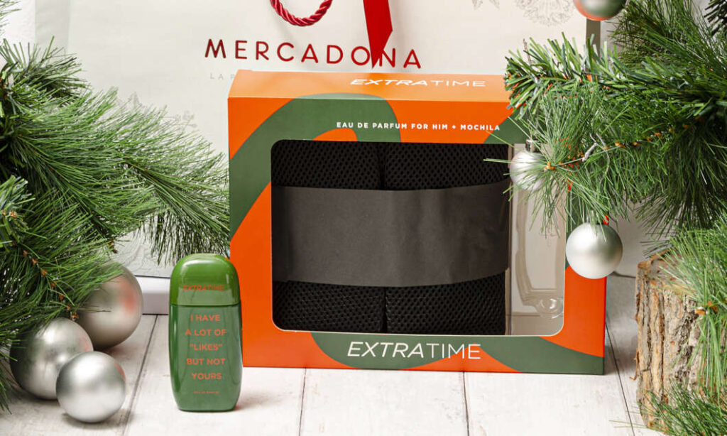 La Perfumería de Mercadona, compañía de supermercados físicos y de venta online, sorprende a sus "Jefes" (clientes) con la colección Extra Time Likes, compuesta por dos fragancias distintas: For Him y For Her. Ambas, que se venden de forma separada, se acompañan por una mochila multiposición y por un neceser, respectivamente.