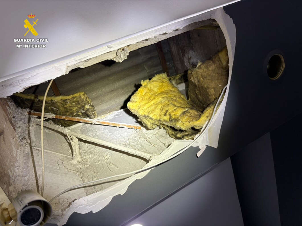 Al llegar, los guardias civiles observaron al sospechoso, quién al notar su presencia intentó huir tras recoger el dinero sustraído. Para escapar, utilizó un butrón previamente realizado y salió por la azotea.
