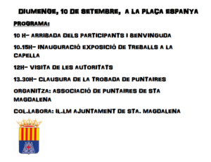 La Asociación de Bolilleras de Santa Magdalena, en colaboración con el Ayuntamiento de la localidad, está inmersa en los preparativos de la 17ª Trobada de Puntaires, que se celebrará el próximo domingo, 10 de septiembre, en la plaza España.