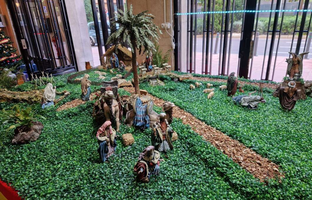 El Belén de la Subdelegación de Defensa, galardonado con el premio a la originalidad en la categoría de Grandes Belenes, ocupa una superficie de ocho metros cuadrados y está compuesto por figuras de 25 centímetros, obra del artista y belenista Jesús Griñán. Las piezas, elaboradas en barro cocido y pintadas a mano, se acompañan de diversos elementos decorativos que realzan el conjunto.