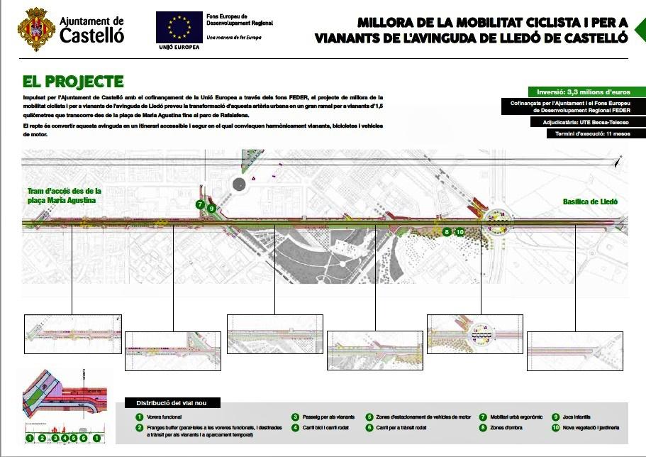 La remodelación de la avenida de Lidón, es un proyecto del Ayuntamiento de Castellón, cofinanciado por fondos europeos adjudicado por un importe de 3,3 millones de euros.