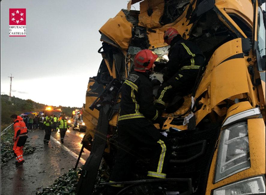 El accidente se produjo en la AP 7. La Autopista ha sido cortada al tráfico en el tramo entre Oropesa y Castellón, en dirección a Valencia
