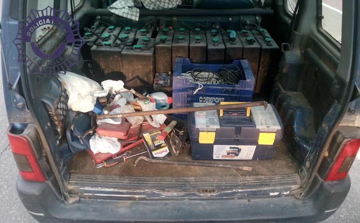 La Policía Local de Castellón ha instruido diligencias al Juzgado de Instrucción de Guardia contra un varón de 47 años de edad al encontrarle en la furgoneta que conducía 24 baterías eléctricas de grandes dimensiones cuya procedencia no pudo justificar. Los hechos se produjeron el pasado jueves sobre las 08:30 cuando una patrulla de la sección de Proximidad, que se encontraba en la Avenida Pintor Oliet, detectó una furgoneta que circulaba muy despacio por dicho vial y que transportaba algo muy pesado en su interior. Los agentes procedieron a darle el alto al conductor que conducía dicho turismo y al abrir la parte trasera del vehículo, los policías observaron que la carga estaba tapada con una manta de grandes dimensiones. Al quitar la tela, los agentes descubrieron que la furgoneta transportaba un total de veinticuatro baterías industriales, posiblemente utilizadas en las instalaciones solares y junto a ellas una pata de cabra de un metro de longitud.