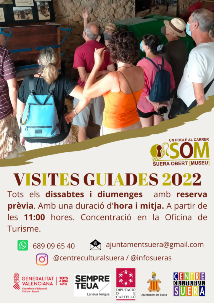 Las visitas guiadas en sí mismas forman parte de la iniciativa de SOM (Suera, Obert Museu) creada por el Centro Cultural Sueras junto al Ayuntamiento del municipio a raíz de la muestra etnológica ‘Suera, un poble al carrer’, que se lleva a cabo desde 1997. El propósito de este proyecto es recuperar y poner en valor el patrimonio histórico y cultural del municipio con actividades a lo largo de todo el año.