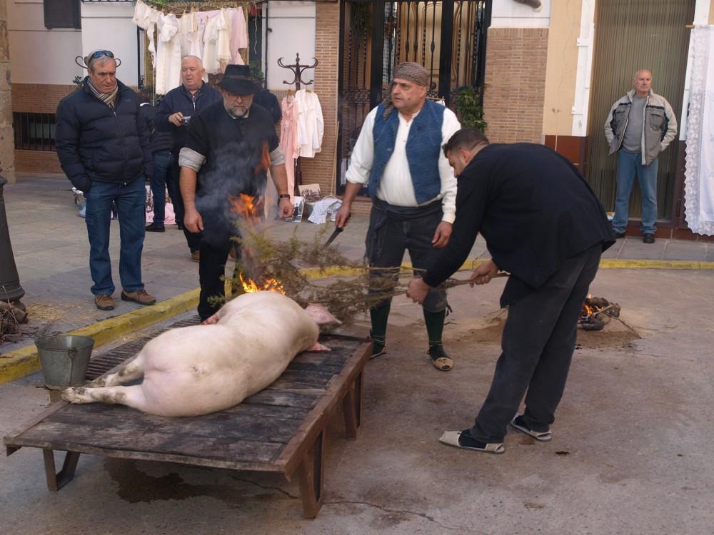 Después ha tenido lugar el tradicional despertar de la Aurora y la matanza del cerdo, mientras todas las paradas tradicionales estaban al público. Se podía visitar las tabernas y probar la gastronomía de la tierra: comer buñuelos, ‘orelletes’, ‘figues albardaes’, ‘panfigos’ o calabazas al horno.