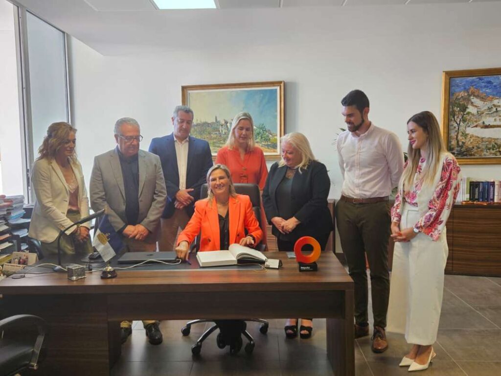 Previamente a entablar la reunión, Fabregat ha firmado en el Libro de Honor del Ayuntamiento de Oropesa del Mar como muestra de compromiso con el municipio.
