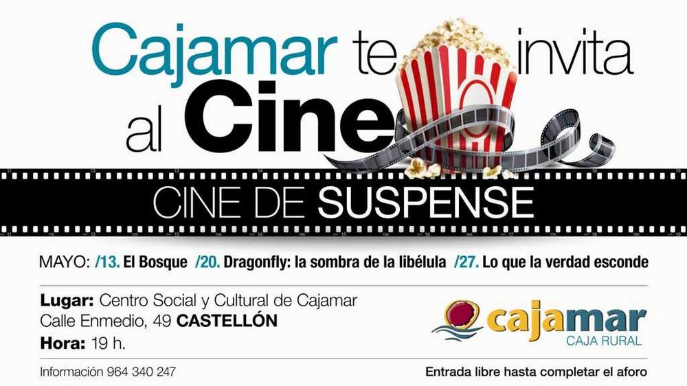 El próximo 13 de mayo, en el Centro Social y Cultural de Cajamar (Calle Enmedio, 49, Castellón), se inicia un nuevo ciclo de Cine de Suspense con la proyección de la película El Bosque, a la que seguirán el 20 de mayo La sombra de la libélula y el 27 de mayo Lo que la verdad esconde. Será con entrada libre hasta completar aforo.
