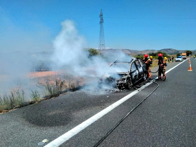 Todo se quedó en un susto pero ¡que susto!. El suceso se producía en la AP-7 a su paso por Castellón. Debido a un problema mecánico el vehículo salió ardiendo. intervinieron los bomberos del Parque de Castellón que pudieron extinguir el fuego y atender a los ocupantes. No hubo daños personales.