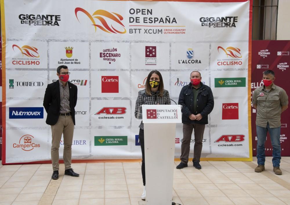 La diputada provincial de Deportes, Tania Baños, ha presentado hoy en el patio de las Aulas de Castelló la carrera BTT Gigante de Piedra 2021, que contará con 700 participantes, cuya modalidad Small, de 115 kilómetros, con salida y llegada en Sant Joan de Moró, se celebrará el sábado 1 de mayo, y la Gigante, de 200 kilómetros, con salida y llegada en l'Alcora, se disputará el sábado 5 de junio. Al acto también han acudido el alcalde de l'Alcora, Samuel Falomir, y el de Sant Joan de Moró, Vicente Pallarés.