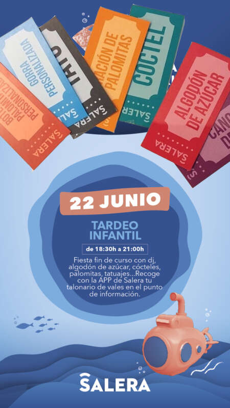 No, los tardeos no son solo para los mayores. Los peques de la casa también tienen su propio tarde y el que se va a realizar este sábado en Salera será para celebrar que se acaba el curso escolar y que no hay nada mejor que una gran fiesta de fin de curso con dj, regalos, algodón de azúcar, cócteles, palomitas dulces, tatuajes y mucho más.