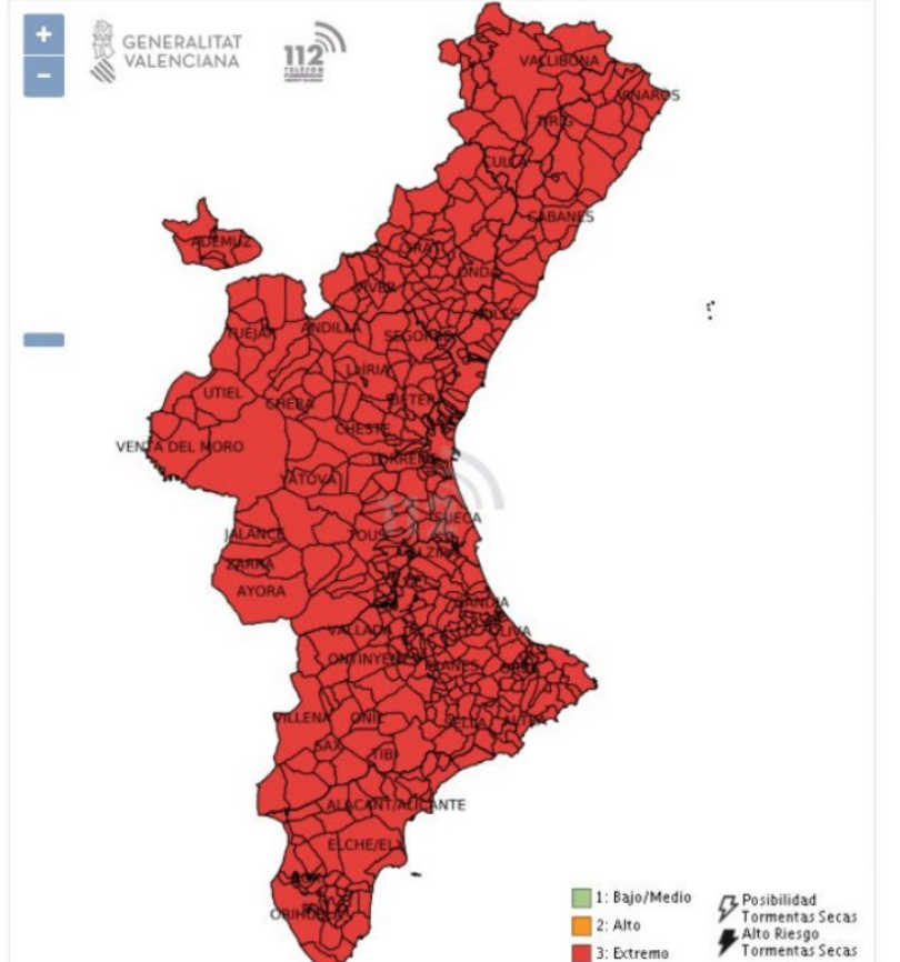 Emergencias alerta de nivel de Preemergencia por riesgo de incendios forestales extremo en toda la Comunitat Valenciana. Ayer ya se alcanzaron temperaturas cercanas a los 40º en varias localidades de la provincia.Las zonas climatológicas en alerta por calor son las comarcas del Alcalatén, Els Ports, Alto Maestrazgo, Bajo Maestrazgo, la Plana Baixa y el Alto Mijares.