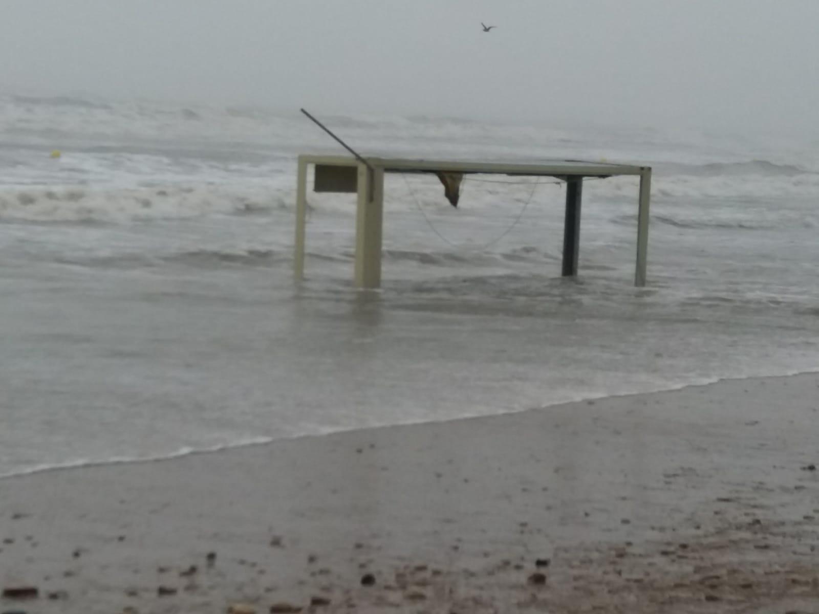 El temporal en la zona litoral de Cabanes se ha tragado la playa y ha llegado hasta el paseo marítimo destrozando las instalaciones de socorrismo, las pasarelas, algunas duchas y otros elementos instalados a la arena.