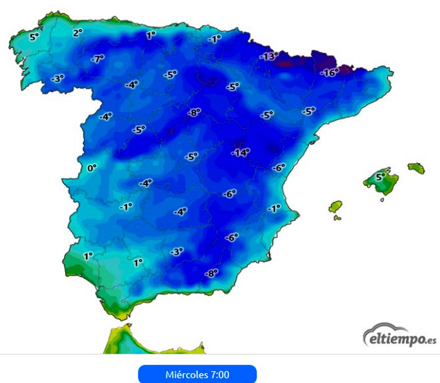 A partir de entonces se recuperaría cierta normalidad, al menos en lo que afecta a las temperaturas, que no bajarían ya de cero a partir del jueves, pero que podrían hacerlo en la noche del domingo, sin alcanzar valores tan bajos como los de hoy.