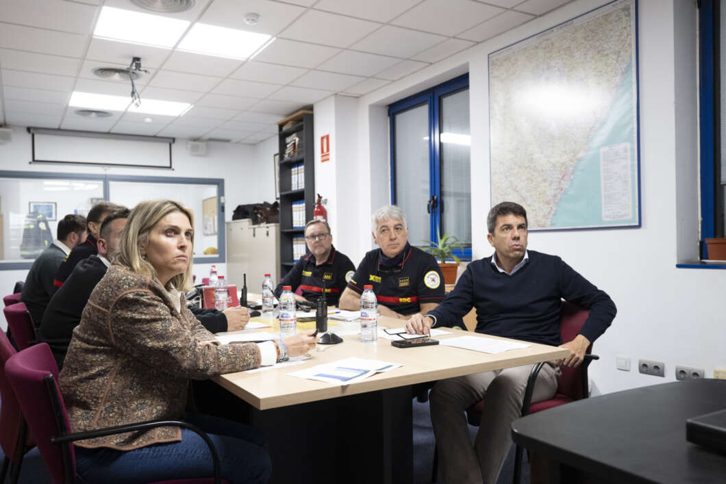 El president de la Generalitat, Carlos Mazón, y la presidenta de la Diputación de Castellón, Marta Barrachina, han asistido esta tarde a una nueva reunión operativa de coordinación en el Consorcio Provincial de Bomberos para analizar el avance del temporal y seguir manteniendo la coordinación entre todos los servicios de emergencias.