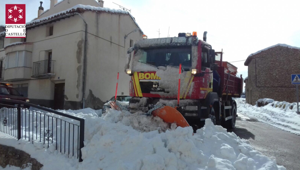 Han continuado durante la jornada los trabajos en el dispositivo de nevadas, con la limpieza de los accesos en muchas poblaciones del interior. Han trabajado medios en la zona de Els Ports, en Castellfort, Portell de Morella, Chiva de