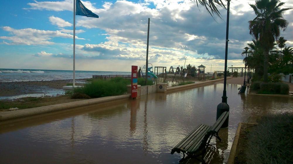 El Paseo Marítimo de Almenara ha quedado inundado de nuevo en alguno de sus tramos debido al temporal marítimo que se ha producido a lo largo de la jornada de hoy. Una vez más el agua ha entrado en el paseo y ha deteriorado algunas zonas del litoral. La Policía Local ha acordonado las zonas más inundadas para evitar males mayores. En el Ayuntamiento de Almenara en esta ocasión no se ha recibido aviso alguna sobre la posibilidad de la existencia de este fenómeno.