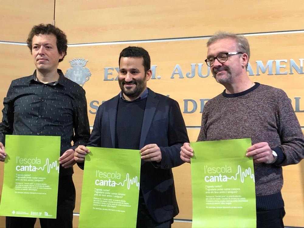 El conseller d'Educació, Cultura i Esport, Vicent Marzà i el regidor d'Educació de l'Ajuntament de Castelló, Francesc Mezquita han presentat a Castelló la tercera edició de 'L'escola canta', un recurs d'innovació educativa centrat en els valors de treball en equip i en el desenvolupament de competències en matèria plurilingüe a través de la música.