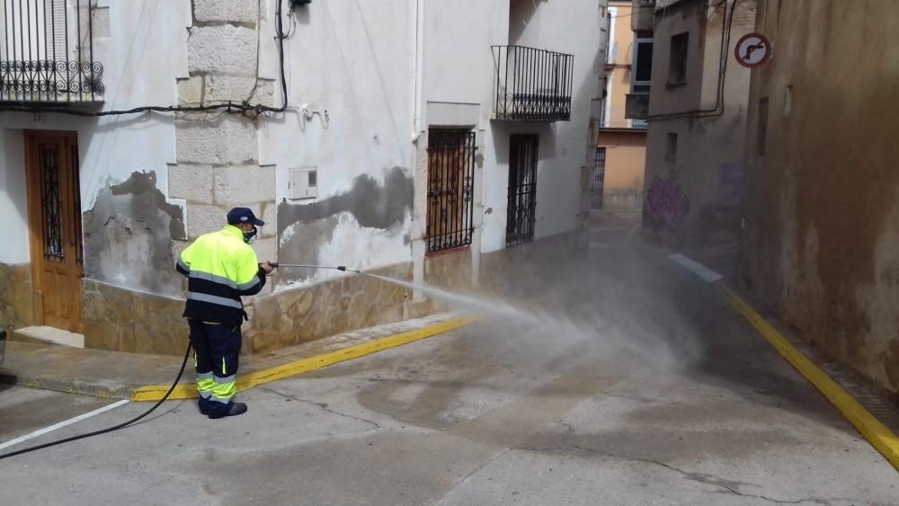 En concreto, el personal, equipado con las medidas necesarias para realizar las tareas de manera segura, está llevando a cabo baldeos de todas las calles del municipio con agua a presión como método eficaz capaz de retirar todo tipo de residuos. Además, junto al baldeo se añade la desinfección con lejía en todos los ámbitos urbanos, intensificando la acción en los contenedores, ya que siguen siendo de uso diario.
