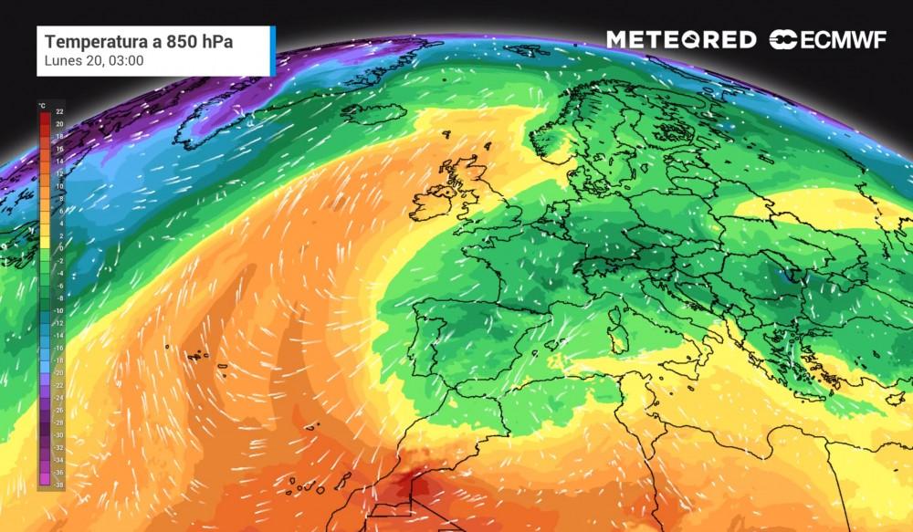 La semana que viene será más fría de lo normal en la mayor parte del país. El noroeste y sureste de la Península tendrán los valores más extremos, con anomalías de hasta -2 ºC respecto al promedio. También hará más fresco en Canarias.