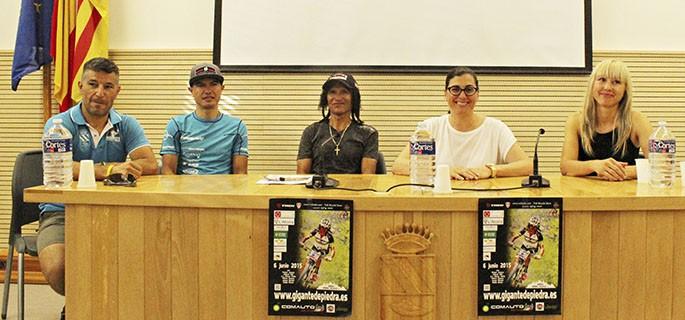 La alcaldesa de l’Alcora, Merche Mallol, el coordinador del evento deportivo Manolo Mallol y los ciclistas profesionales Tínker’ Juárez, Milton Ramos y Cati Violeta han presidido el acto de presentación de la cuarta 'Volta al Gegant de Pedra-Ultrabike del Penyagolosa BTT' que se celebrará el sábado en l’Alcora.